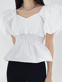 Square Neck Short Sleeves Blouse With Ruched On Waist