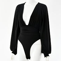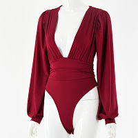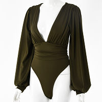 Drop V-Neck Long Sleeves Ruched waist Bodysuit