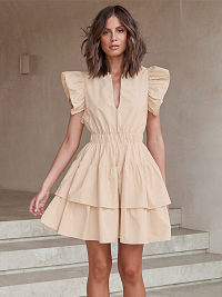 Fly sleeve pure color cotton dress