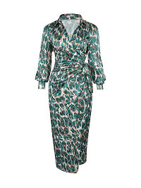 Allover Animal Print Collared Waist Belted Split Side Shirt Dress