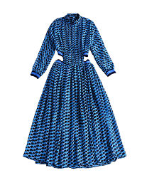 Stand Neck Cutout Waist Pleated Maxi Dress With Long Sleeves