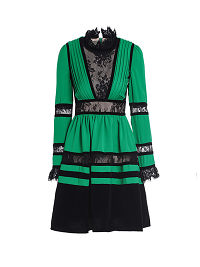 Stand Neck Lace Inserts Velvet Hem Mini Dress