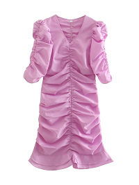 Solid Pleated Sleeves And Body Mini Bodycon Dress